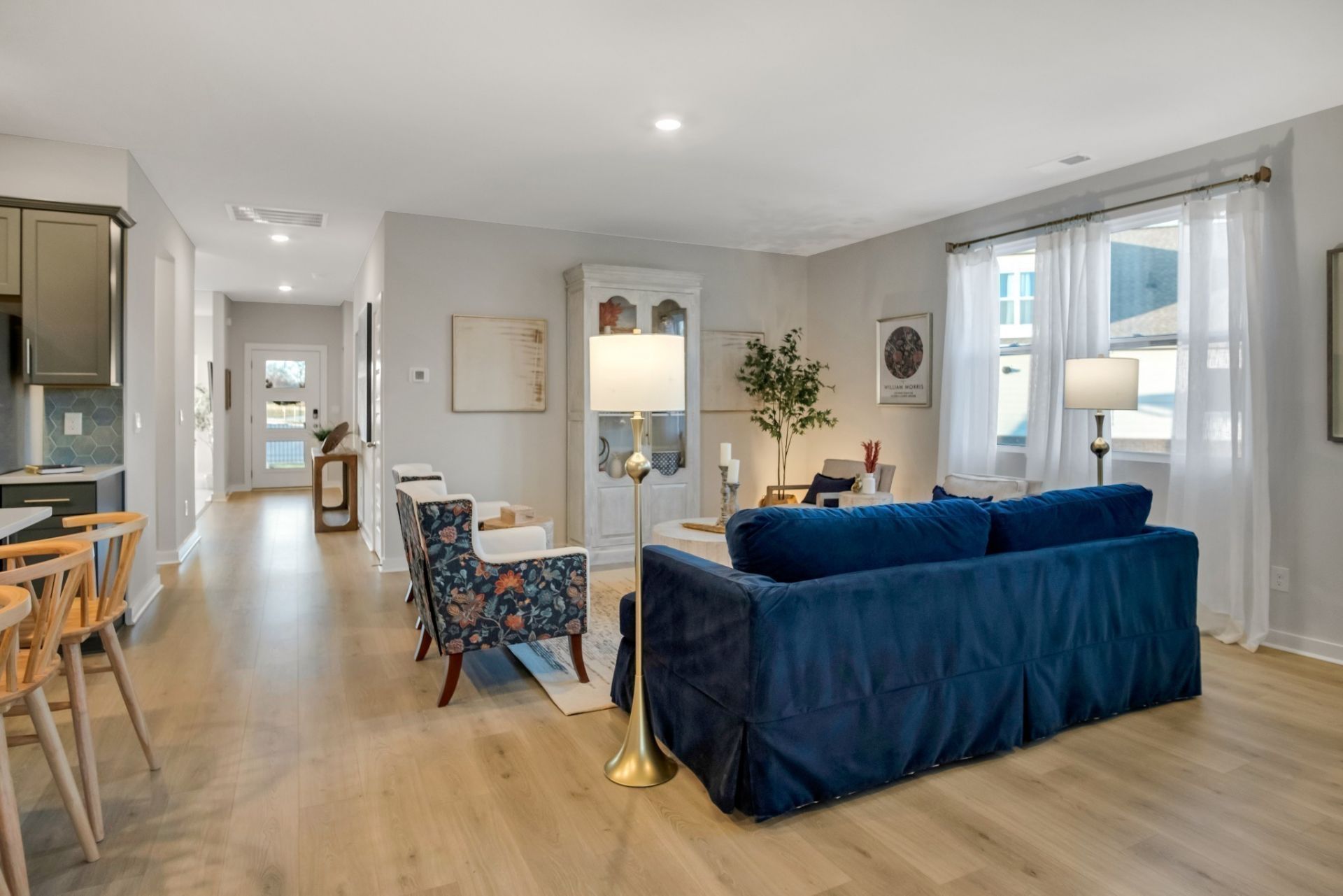 Nexus South 55+ Active Adult The Clifton floorplan is a beautifully crafted single-story home offering 1,796 sq ft of comfortable living, perfect for families or individuals seeking convenience and style. Featuring 3 bedrooms and 2 bathrooms, it balances private retreats with shared spaces. The spacious primary bedroom includes a large walk-in closet and a modern in-suite bathroom, creating a relaxing oasis. At the heart of the home is the open-concept kitchen, boasting elegant quartz countertops that combine sophistication with everyday functionality. The kitchen flows seamlessly into the dining area and great room, ideal for family gatherings or entertaining. With ample cabinet space and modern appliances, this kitchen is both practical and beautiful. Two additional bedrooms are generously sized, perfect for guests, a home office, or hobbies. A 2-car garage offers plenty of storage and easy home access. Equipped with smart home technology, the Clifton lets you control lighting, security, and climate effortlessly. Designed for today's lifestyle, it combines style, functionality, and advanced tech, making it the perfect home in Nexus South, Gallatin, TN.